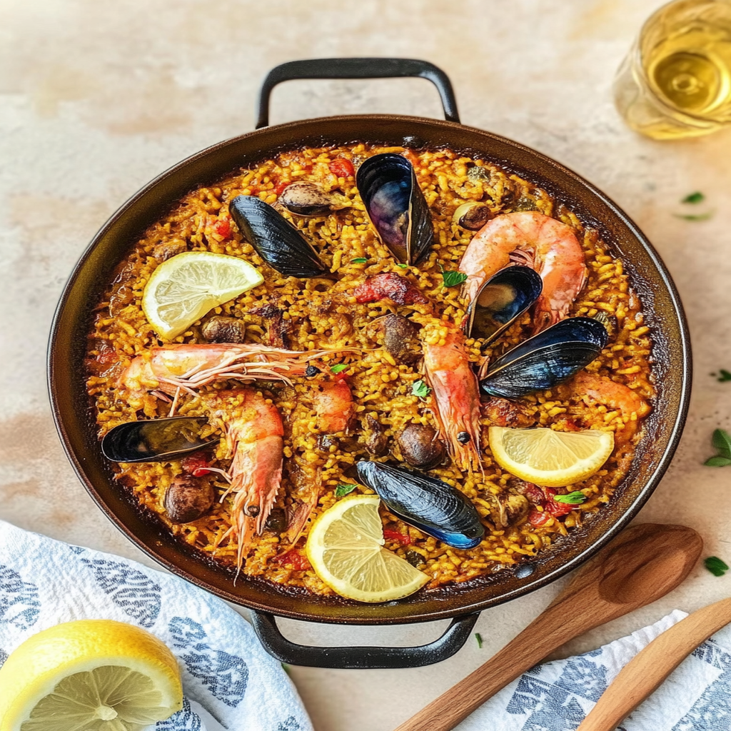 For an authentic paella recipe, you will need rice (preferably Bomba or Calasparra), saffron, chicken, rabbit, green beans, tomatoes, and olive oil. Seafood options like shrimp and mussels are also popular. You should include garlic, onion, and paprika for flavor. Fresh herbs can enhance the dish as well. Make sure to use a good quality broth for the best results. This combination of ingredients creates a rich and flavorful profile that is essential for a true paella experience. For more inspiration, check out this garlic butter lobster tail recipe.