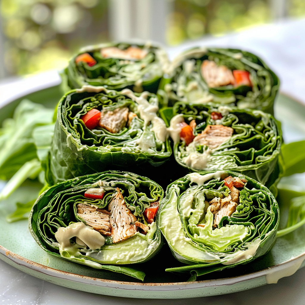 Tasty Collard Green Wraps with Grilled Chicken & Tahini