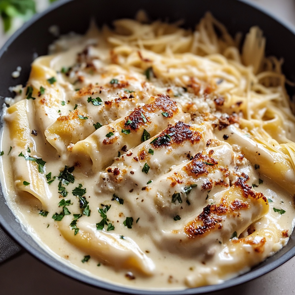 Chicken Manicotti Alfredo is a creamy, comforting dish that transforms dinner into a delightful feast. This recipe features tender manicotti shells generously stuffed with a savory chicken and cheese filling, all enveloped in a rich Alfredo sauce. Perfect for family gatherings or cozy weeknight meals, this dish promises to impress both the palate and heart. Simple to prepare with easily accessible ingredients, Chicken Manicotti Alfredo is your go-to recipe for satisfying cravings for Italian comfort food.