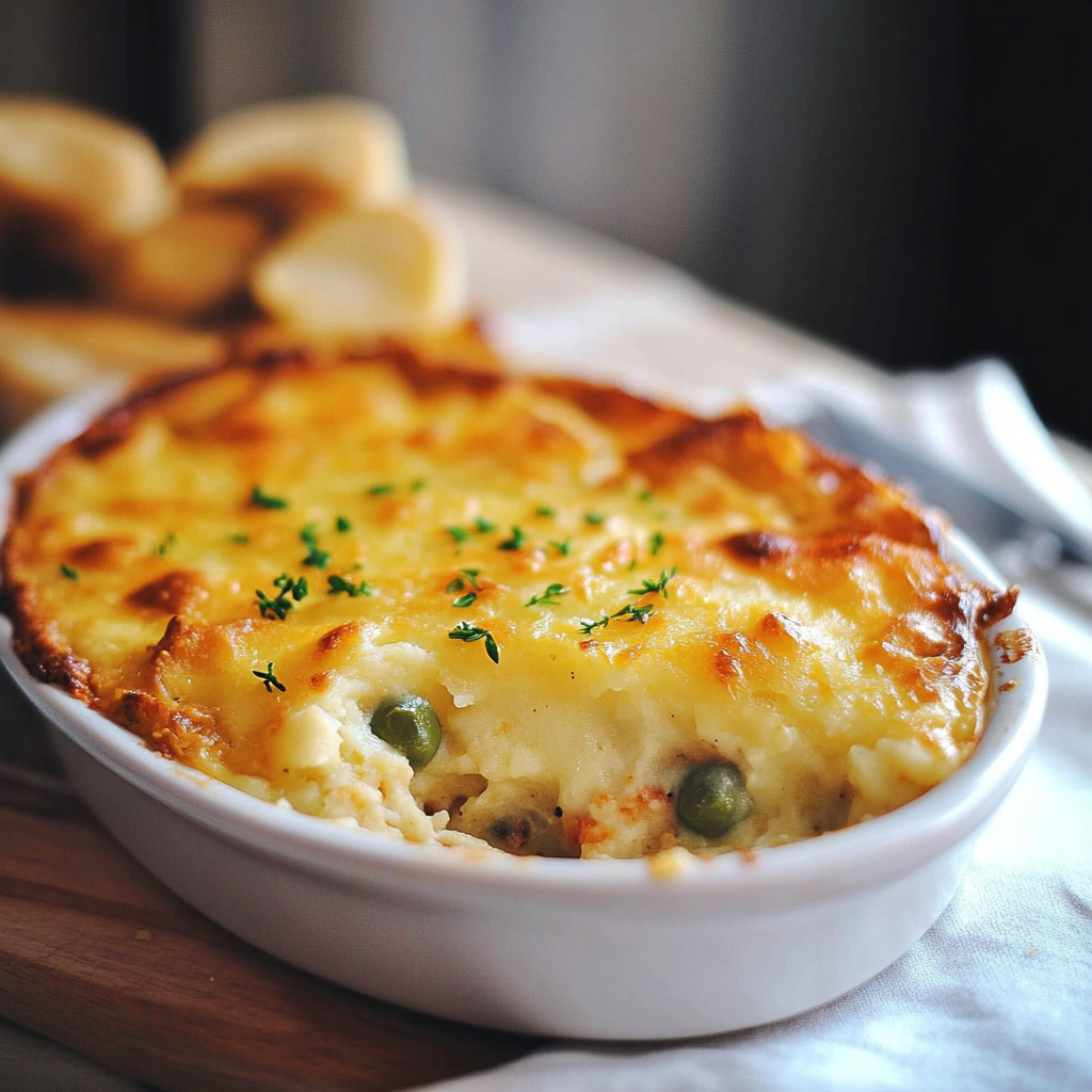 In summary, Chicken Shepherd’s Pie offers an inviting blend of flavors that appeals to both children and adults alike while providing nutritional benefits through its wholesome ingredients. The preparation process is quite flexible; you can easily adapt it by making substitutions based on dietary preferences or availability of ingredients without sacrificing taste quality. Cooking ahead saves time during busy weekdays while allowing flavors to deepen over time enhances enjoyment when served later on! Whether enjoyed immediately after cooking or saved as leftovers for another meal—this comforting dish never disappoints as a hearty choice at any dinner table! Choose your ingredients wisely and savor each delicious bite!