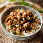Collard Greens & Black-Eyed Peas Rice Bowl is a vibrant and hearty dish that brings together tender collard greens and creamy black-eyed peas atop fluffy long-grain rice. Seasoned with aromatic garlic and onion, this comforting bowl is not only a feast for the eyes but also packed with essential nutrients. Perfect for family gatherings or cozy nights in, it offers a delightful blend of flavors that warms the soul with every bite.