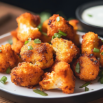 Once cooked, remove your air-fried cauliflower from its basket carefully using tongs—they’ll be hot! Transfer them onto a serving platter where guests can help themselves easily when entertaining friends or family members at home! To enhance presentation visually consider garnishing with chopped fresh parsley—this adds both color contrast alongside freshness while elevating overall appeal too! For dipping sauces serve alongside ranch dressing or spicy aioli if desired—these pair perfectly alongside crispy textures drawing out flavors beautifully!
