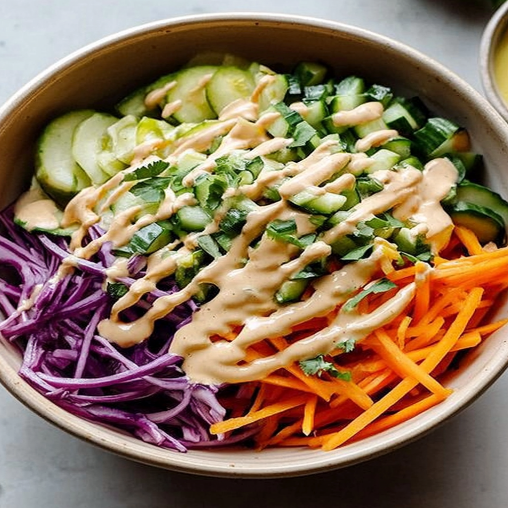 Salad Bowl Rainbow Veggie with Tahini Dressing is a vibrant and refreshing dish that combines a colorful medley of fresh vegetables tossed in a creamy tahini dressing. This delightful salad features crunchy cucumbers, sweet bell peppers, juicy cherry tomatoes, and rich avocado, making it perfect for summer picnics or light dinners. Enjoy every bite as you savor the burst of flavors and feel energized with this nutritious meal.