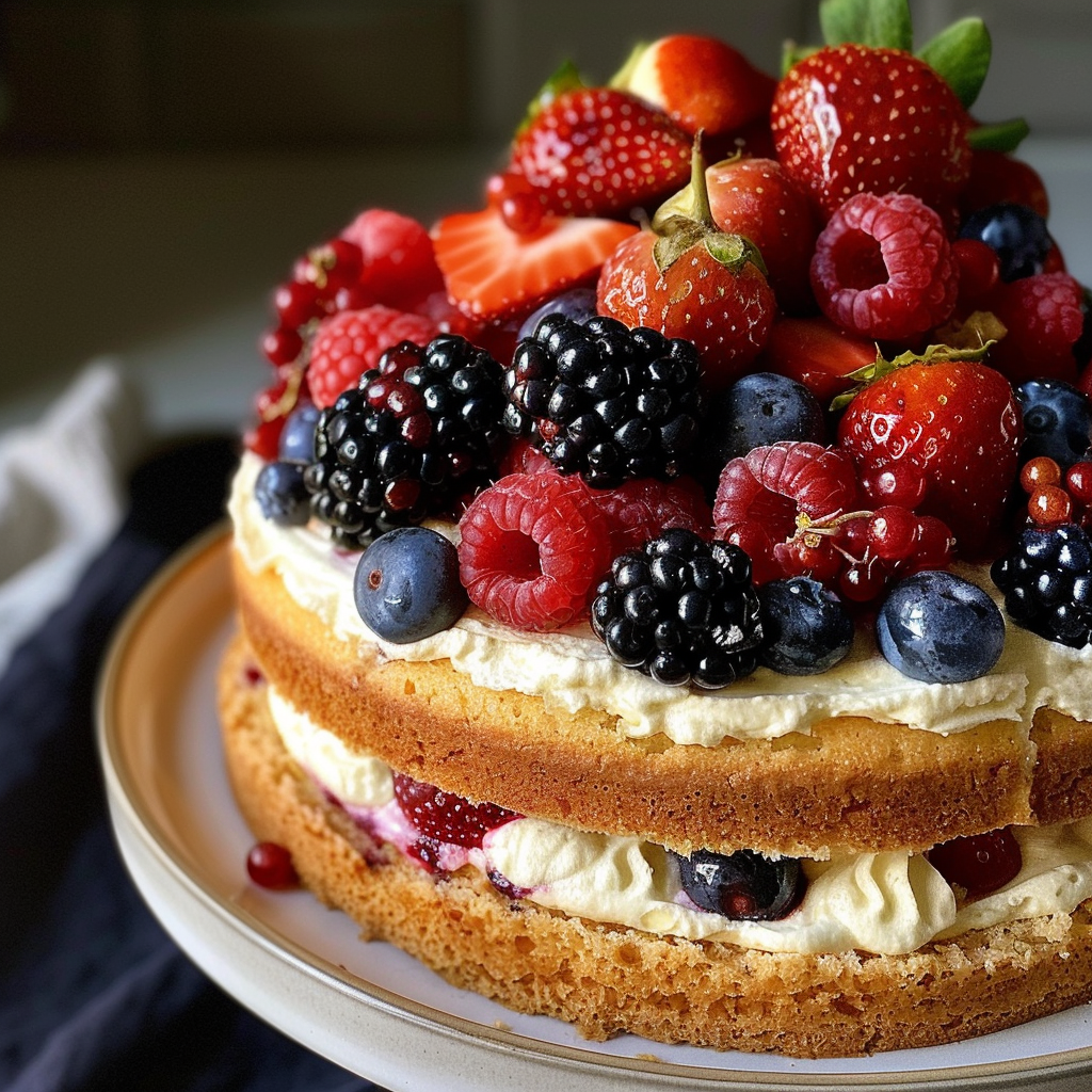 Ring in the New Year with this enchanting Berry Topped New Years Cake, featuring a fluffy sponge layered with whipped cream and crowned with vibrant, fresh berries. This stunning dessert not only tantalizes the taste buds but also serves as a beautiful centerpiece for your celebrations. Perfect for impressing guests, this cake embodies joy and renewal, making it an ideal addition to your festivities.