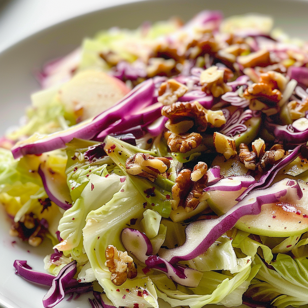- Crunchy cabbage meets sweet apples and nutty walnuts in a dance of flavors that will have your taste buds doing the cha-cha.