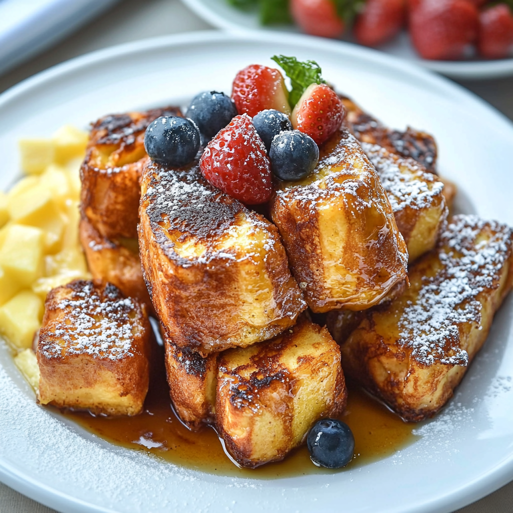 Pairing your Hawaiian Roll French Toast with fresh fruit enhances both flavor and nutrition content significantly. Sliced strawberries, blueberries, or pineapple complement its sweetness while providing vibrant color contrast on your plate. The natural acidity from fruits balances out sugariness from syrup or whipped cream beautifully as well! Consider serving a fruit salad alongside or topping individual servings with seasonal fruits based on availability—this approach elevates presentation while also making each bite more refreshing.