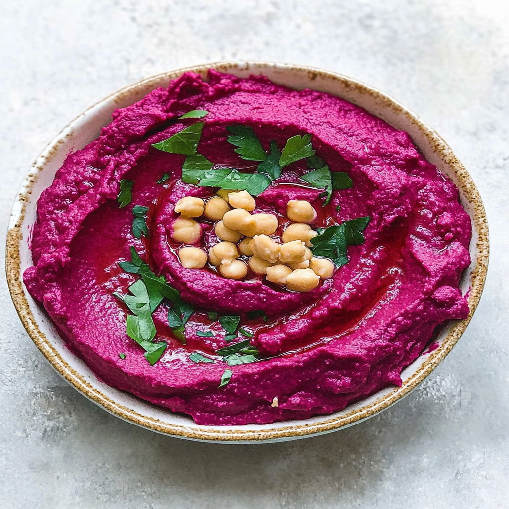 In conclusion, beet hummus is an exciting twist on classic hummus that combines the earthy sweetness of beets with creamy chickpeas and tahini. This dip not only adds vibrant color to your table but also offers numerous health benefits packed with nutrients and fiber. sweet and savory contrasts Whether you serve it with fresh vegetables or use it as a spread on sandwiches, beet hummus is sure to impress your guests and family alike. Enjoy this nutritious recipe as part of your next gathering or as a wholesome snack at home!