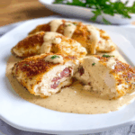Transfer to plates and drizzle with sauce for the perfect finishing touch. Voilà! You’ve created a chicken cordon bleu masterpiece topped with a luscious sauce that would make even Gordon Ramsay nod in approval (and maybe crack a smile). Enjoy every bite!