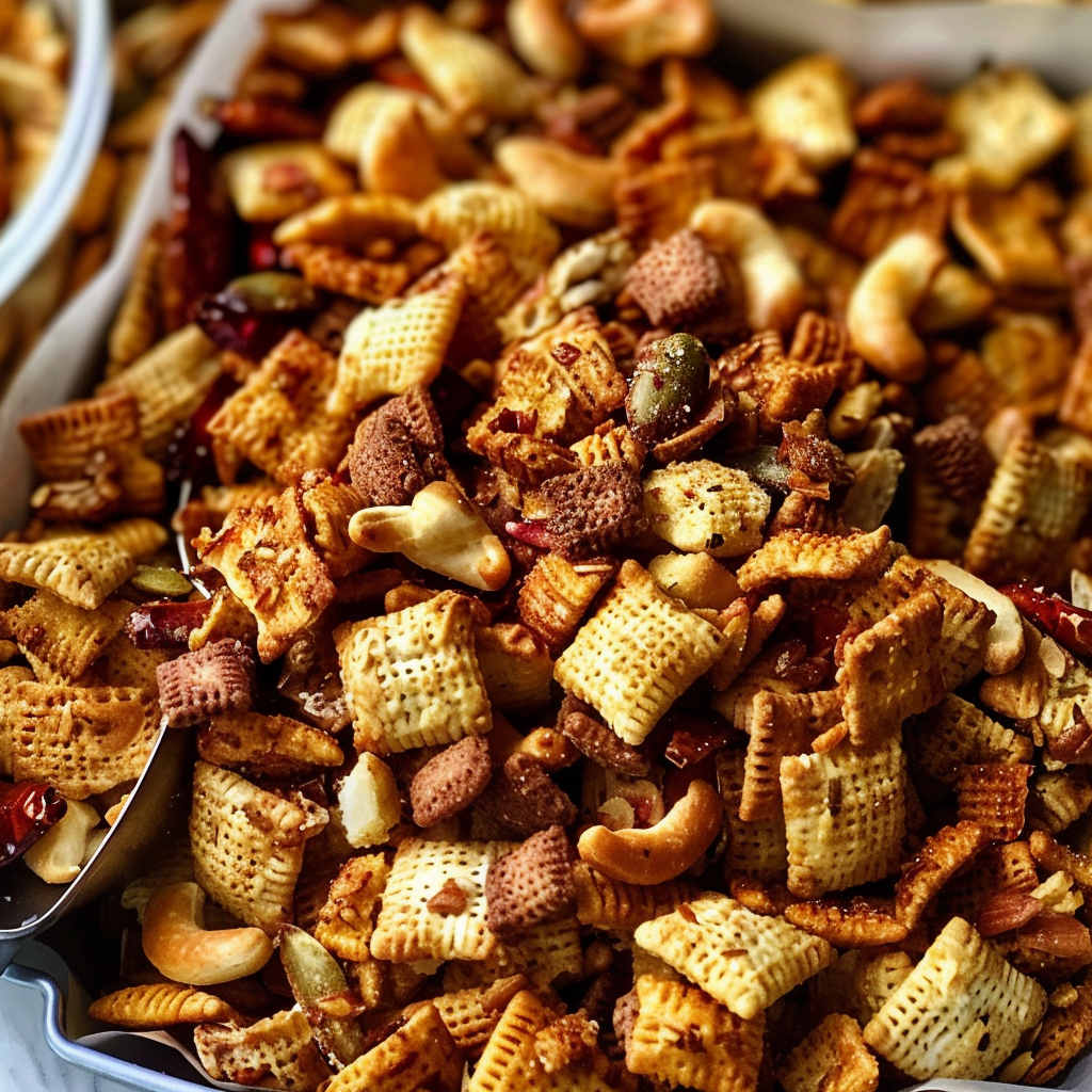 The Middle Eastern Spicy Chex Mix Recipe combines a variety of textures and flavors, creating a unique snack. This recipe features traditional Chex cereal, nuts, seeds, and spices commonly found in Middle Eastern cuisine. With a blend of warmth from spices like cumin and paprika, plus the crunchiness of toasted ingredients, it makes for an ideal savory treat during gatherings or movie nights.