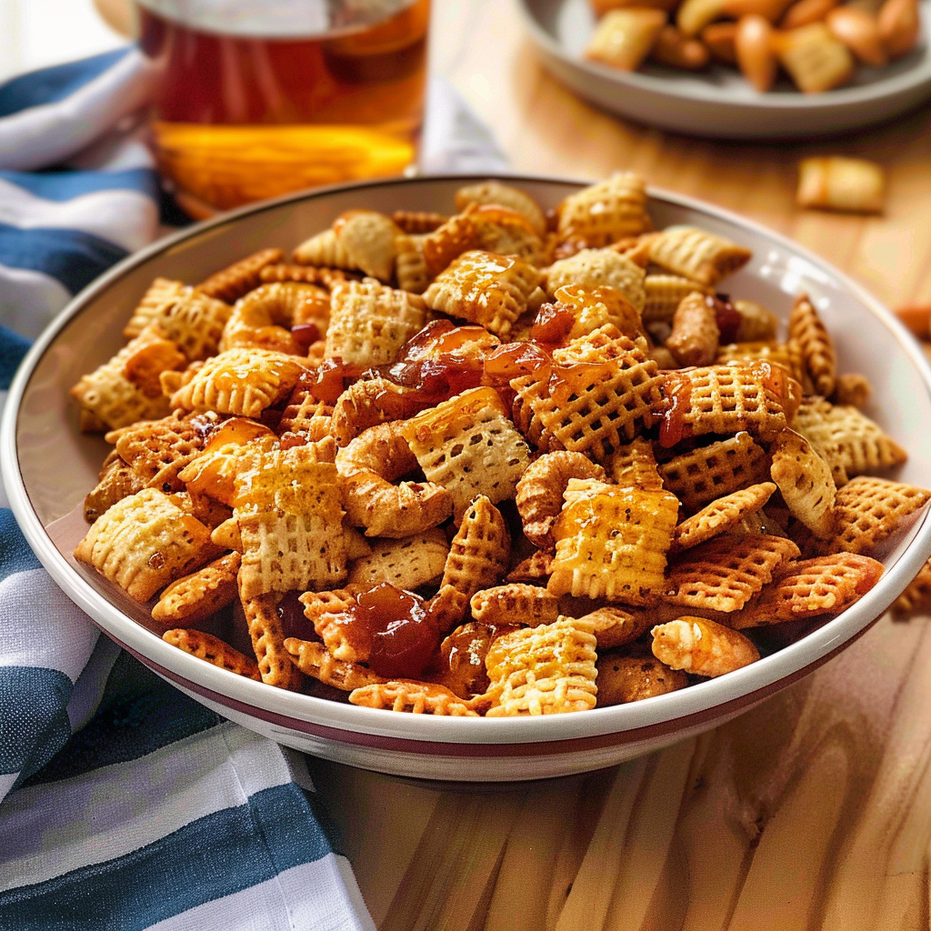 Sriracha Honey Chex Mix is a deliciously addictive snack that combines the perfect balance of sweet and spicy flavors. This quick and easy recipe features crunchy Chex cereal, salty pretzels, and roasted nuts, all coated in a mouthwatering glaze of Sriracha and honey. Whip up this delightful mix in under 30 minutes for game nights, movie marathons, or any occasion that calls for a tasty treat. Enjoy this irresistible snack that will keep your taste buds dancing!