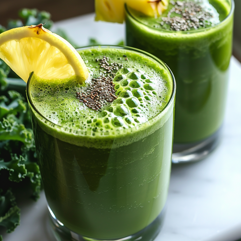 Refreshing Green Juice with Kale, Pineapple, and Lemon