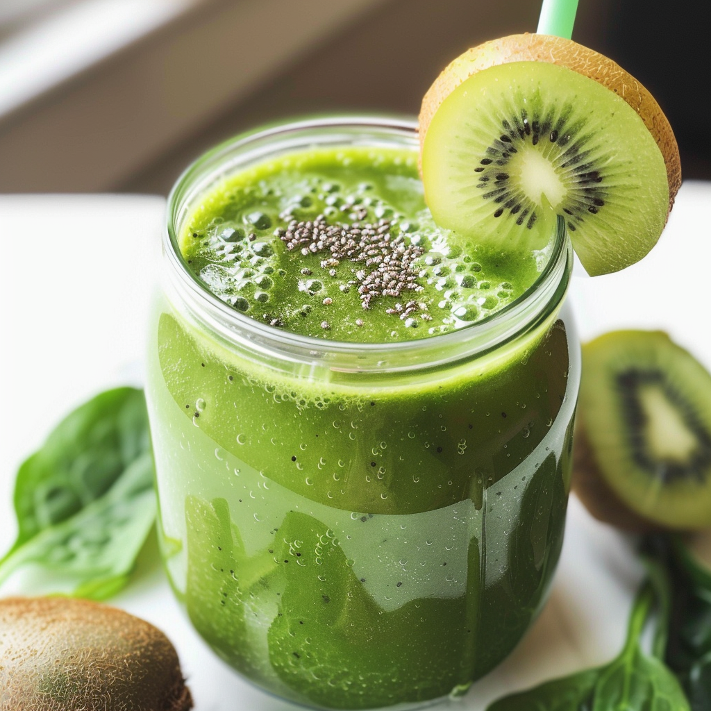 Green juice with spinach and kiwi is packed with vitamins and minerals. Spinach provides iron, calcium, and vitamin K, while kiwi offers vitamin C, fiber, and antioxidants. Combining these ingredients boosts your immune system, improves digestion, and promotes healthy skin. This refreshing drink is not only nutritious but also helps detoxify your body, making it a great addition to your daily routine.
