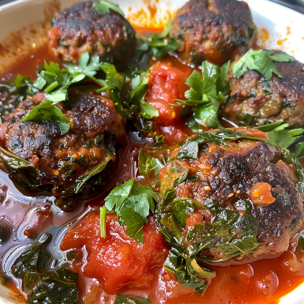 - Collard Greens & Beef Kofta in Tomato Sauce is not just a meal; it’s a flavor-packed journey through the Mediterranean.