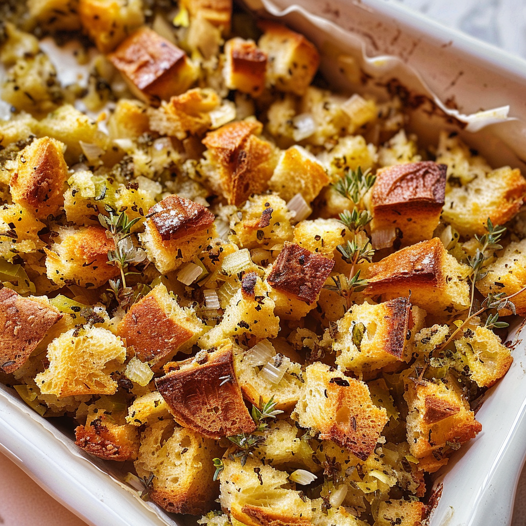 Imagine diving into a dish that bursts with savory flavors and delightful textures. Each bite is a harmonious blend of crispy edges and soft, buttery centers, making your taste buds dance with joy. This stuffing doesn’t just accompany your turkey; it’s like the life of the party that steals the spotlight!