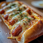 In summary, the Ultimate Cheese Dog Pizza Sandwich combines classic flavors in an innovative way that appeals to both kids and adults alike. With simple ingredients like hot dogs, pizza dough, various cheeses, and optional toppings such as vegetables or herbs added into the mix—you create an appealing dish that delights everyone at any gathering! The preparation process is straightforward: roll out dough around fillings; bake until golden brown; slice into portions; enjoy warm alongside favorite side dishes! Whether customizing based on dietary needs or preparing ahead of time makes serving easy—the versatility allows creativity while maintaining deliciousness throughout every bite! Dive into this delightful experience today because once you try it—you’ll want more!