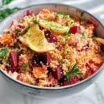 Brighten your plate with this vibrant Beet & Couscous Vegetable Bowl, a nutritious and colorful dish that combines the earthy sweetness of roasted beets with fluffy whole wheat couscous and a medley of fresh vegetables. Perfect for casual weeknight dinners or special gatherings, this easy-to-make bowl delivers an explosion of flavors in every bite, leaving your taste buds craving more.